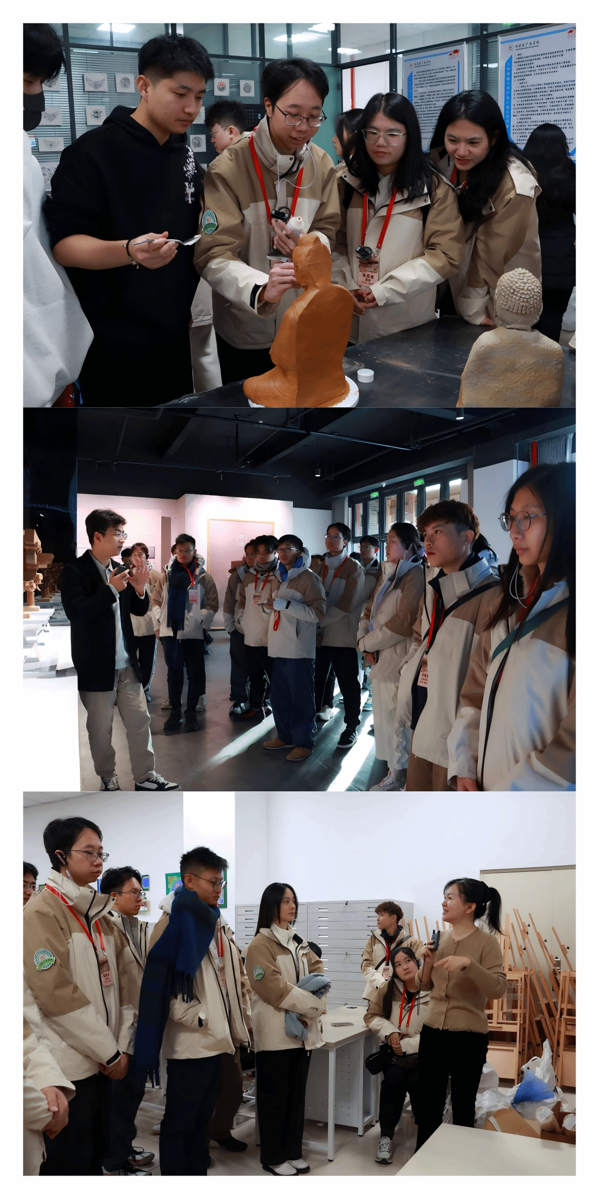 走进古建展厅,香港青年聆听讲解老师解读不同山西古建模型背后的建筑技艺与历史渊源,在方寸模型间触摸三晋大地千年建筑文明的脉络,他们被辉煌的建筑技艺折服,为璀璨的建筑美学驻足。走进石窟寺保护和古建彩绘实训课堂,大家近距离观摩并加入专业学生的实训小组亲自体验泥塑手作,在实践操作中感受传统营造技艺的匠心与魅力,在沟通交流中加深两地青年的了解和友谊。