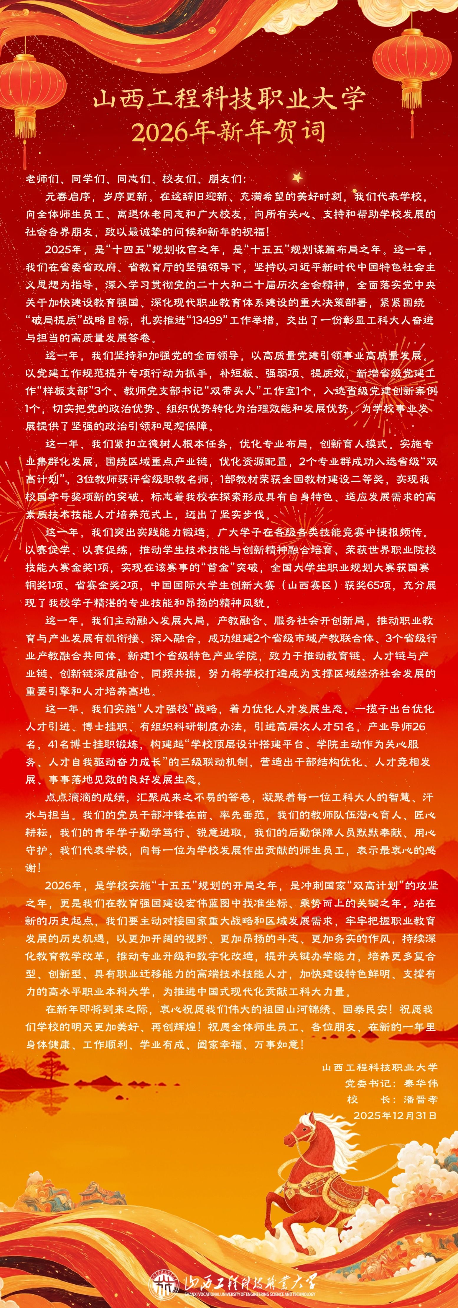 山西工程科技职业大学2026年新年贺词