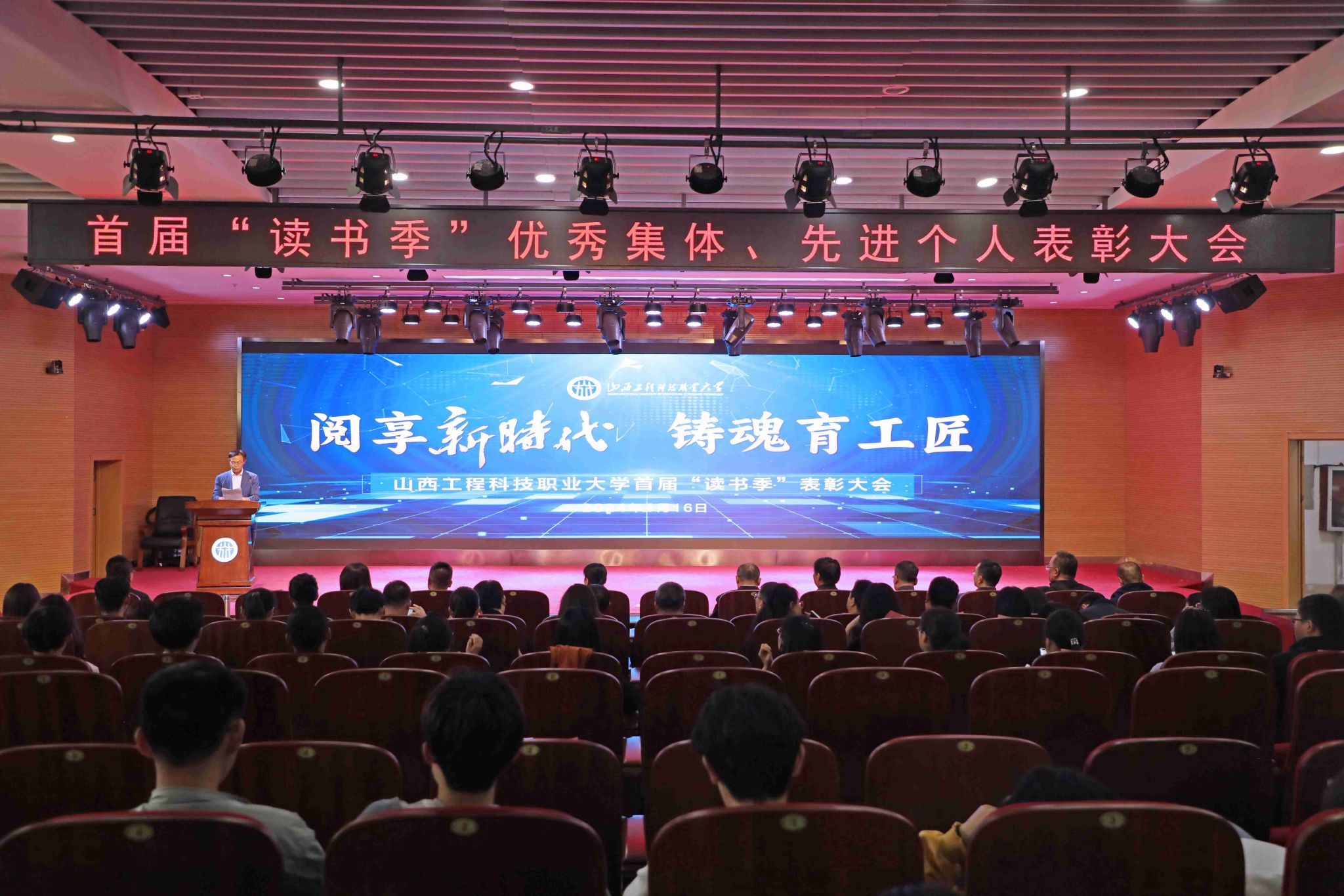 为贯彻落实党的二十大关于深化全民阅读活动的重要部署,引领阅读风尚和营造读书氛围,4月16日,我校首届“读书季”表彰大会在图书馆西馆一层报告厅召开。学校“读书季”领导组常务副组长、副校长石瑛,宣传部部长郭文彦、各二级学院党委书记、分管学生工作的专职副书记,辅导员及学生代表共计420人参加。会议由图书馆负责人郭启芝主持。
